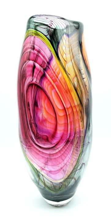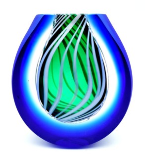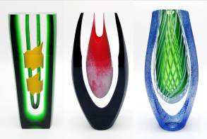 Handblown glass vases in a dazzling array of shapes, styles and colours. Each piece skilfully crafted and signed to the base.
