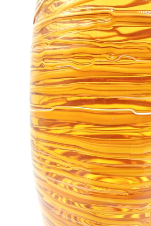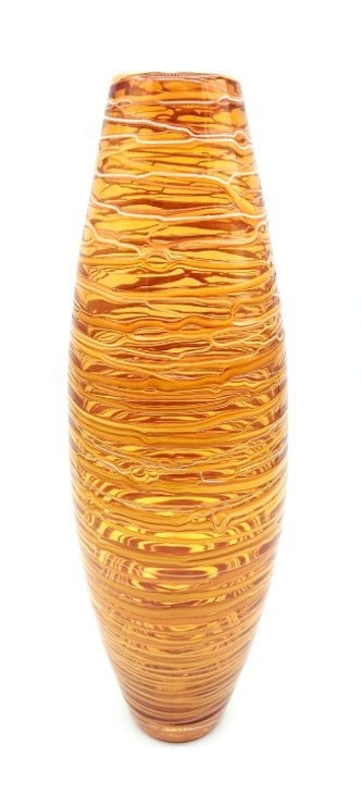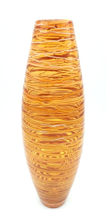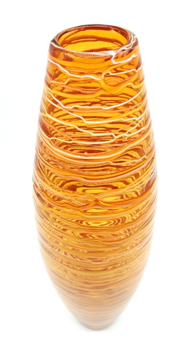 Add some vibrant colour & texture to your decor with this handblown art glass vase, with trailed glass to the surface.