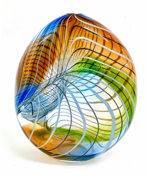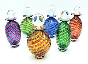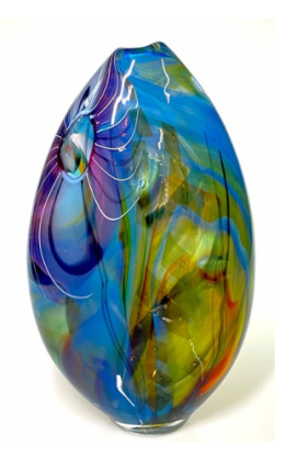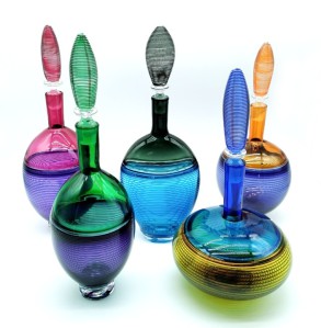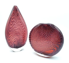 Handcrafted glass bowls & vessels in rich colours with beautiful textured finishes. Each piece skilfully made and signed to the base.