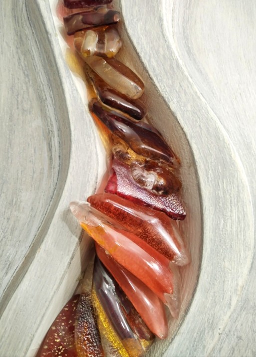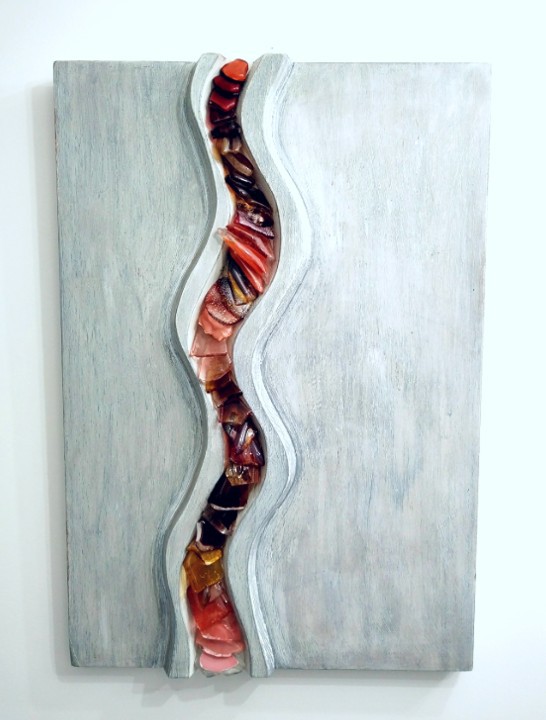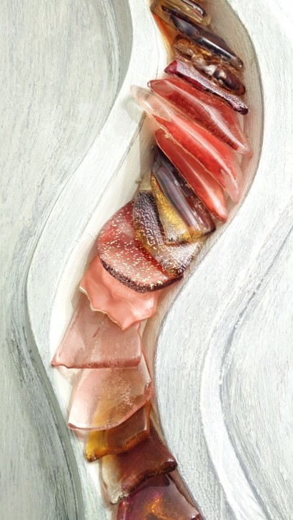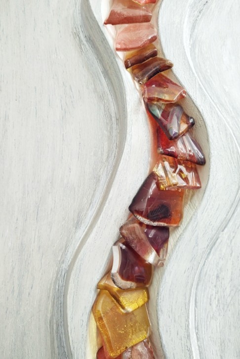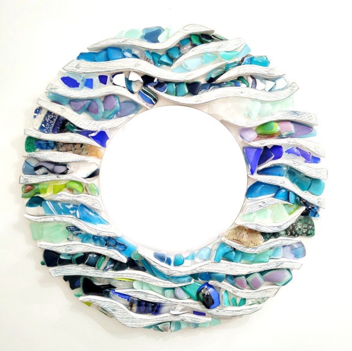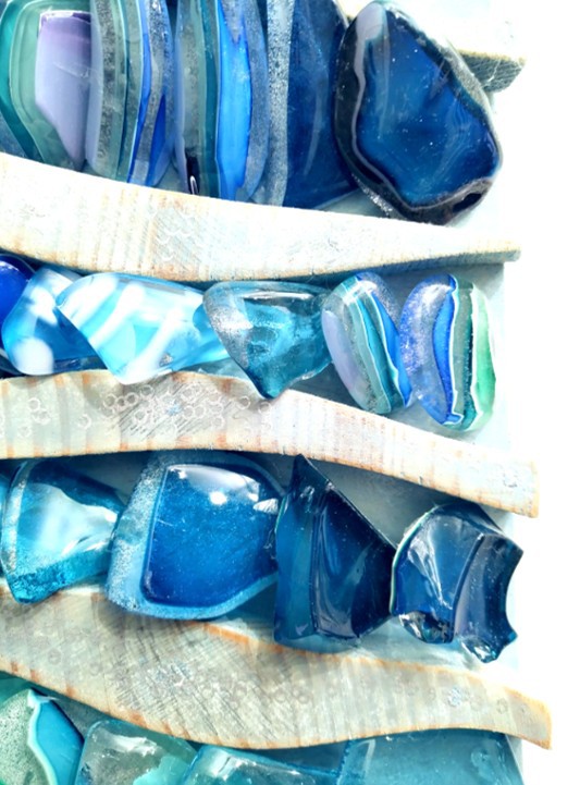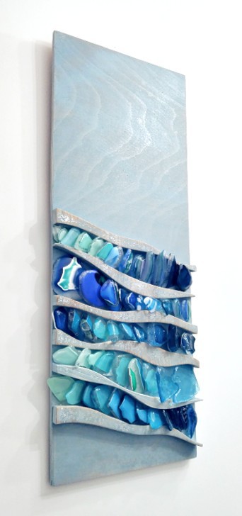 Created using recycled elements from her husbands (Allister Malcolm) glassmaking, Terri creates beautful wall mounted pieces with a keen eye for detail, colour and form.