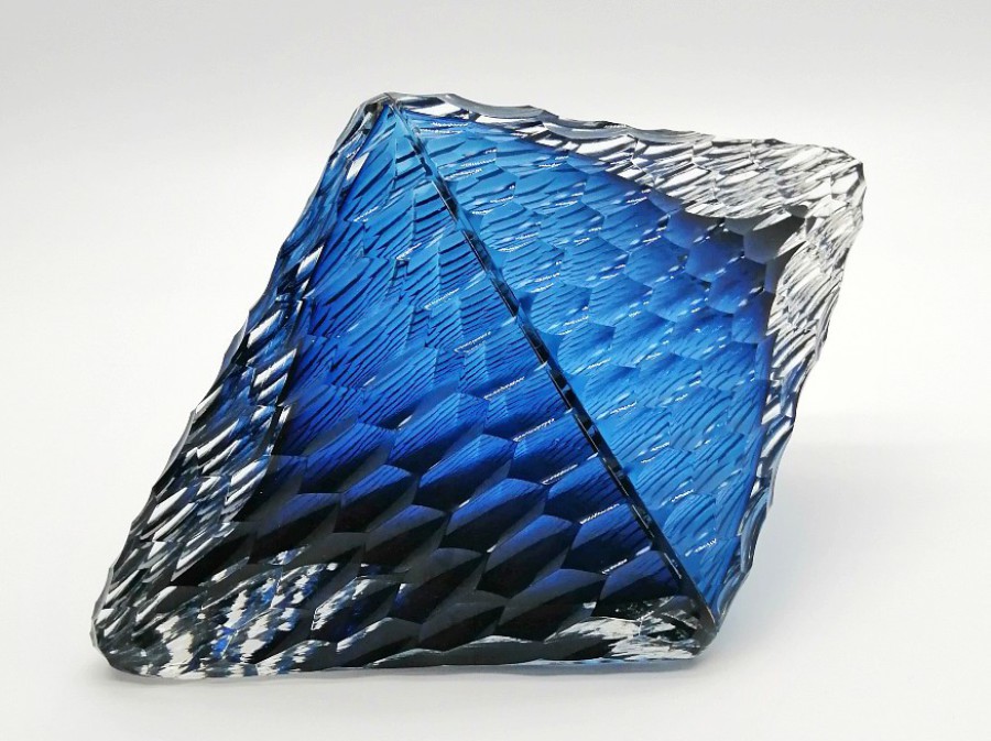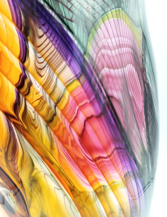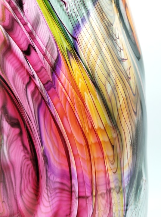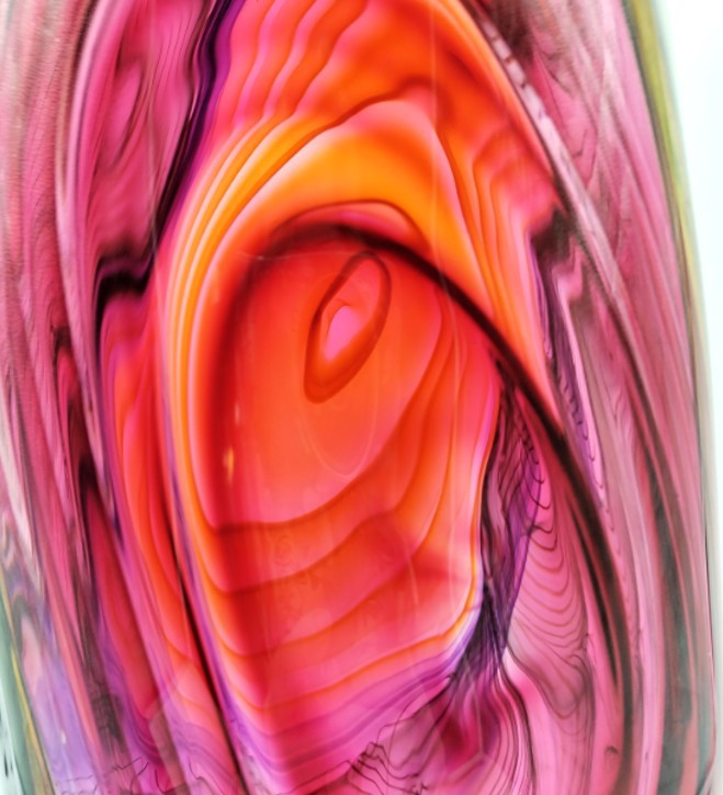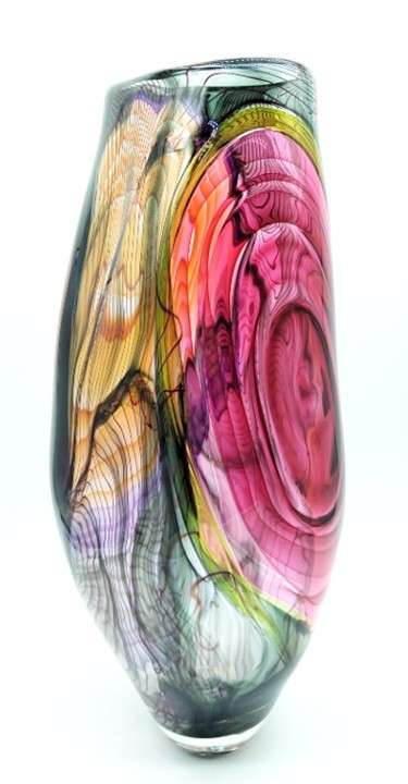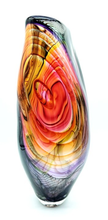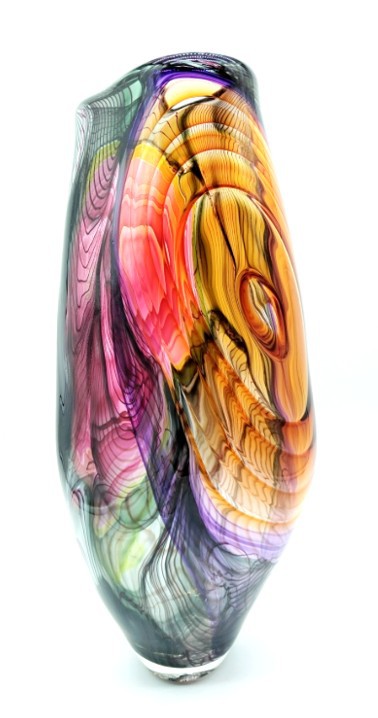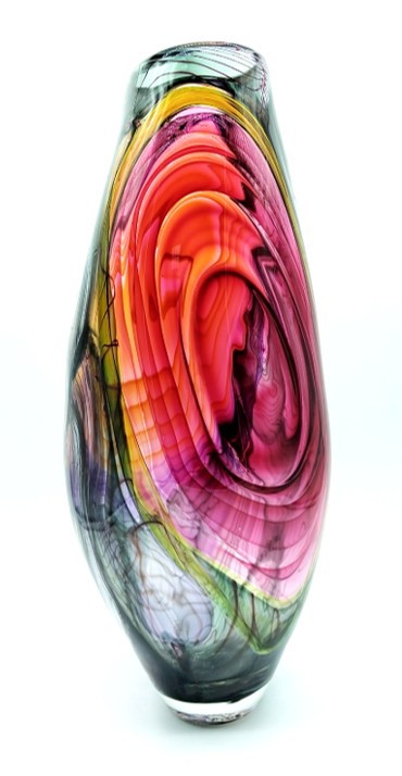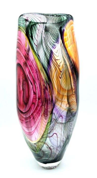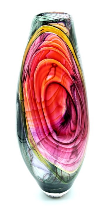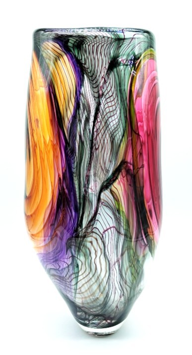 Make a statement with this colourful and unique art glass centrepiece, inspired by the contour lines on ordnance survey maps. The 360 degree viewing of this piece provides an ever changing and inspiring image.