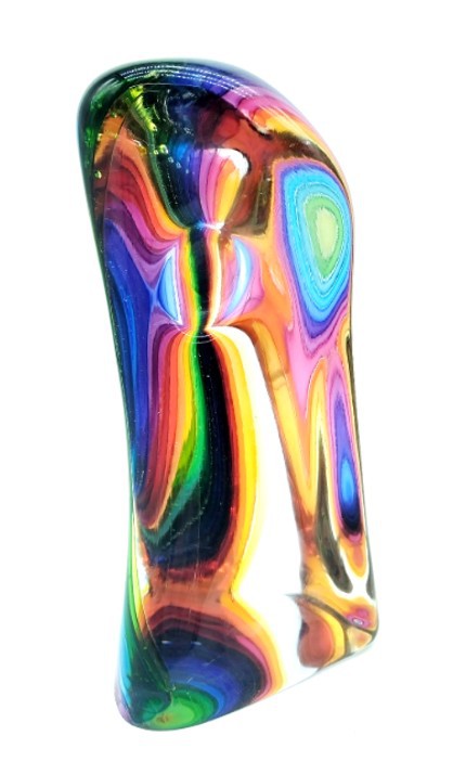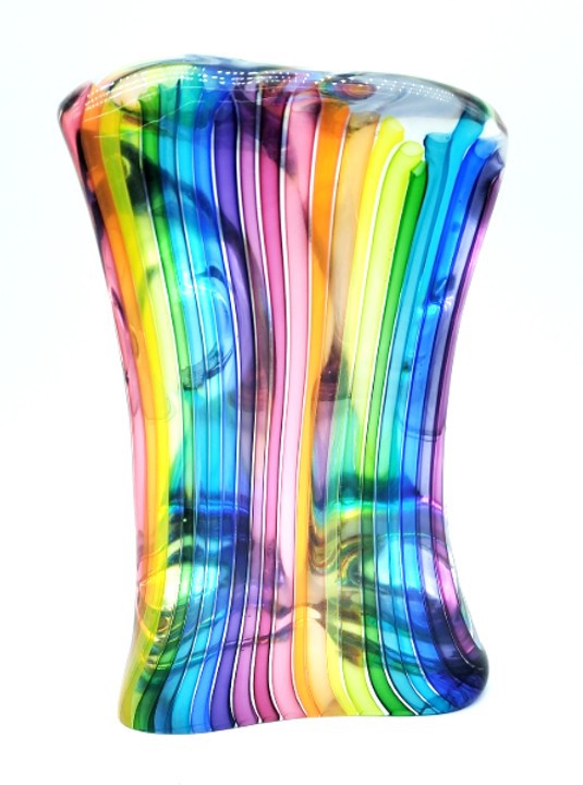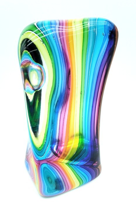 The strict linear colour application appears true from one side, yet creates an erroneous state from the other. This projects an altered and distorted view, continuously revealing new details to the viewer. These forms illustrate how our perception can change, reflecting the transformations we encounter in nature and our own lives.