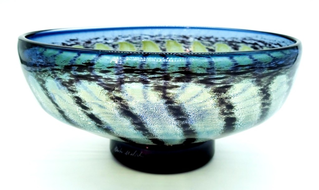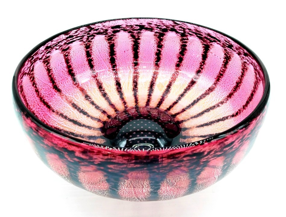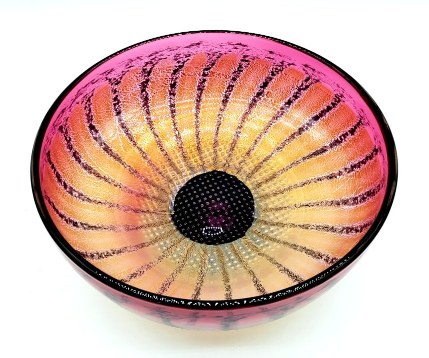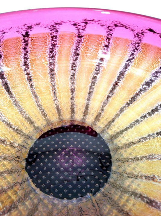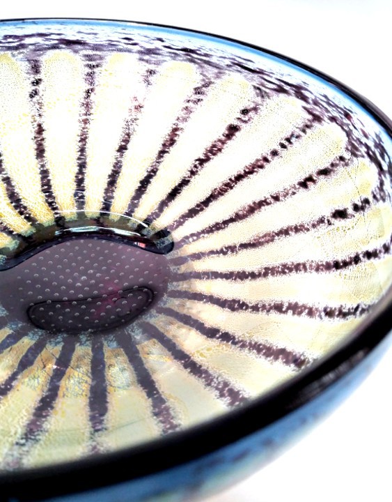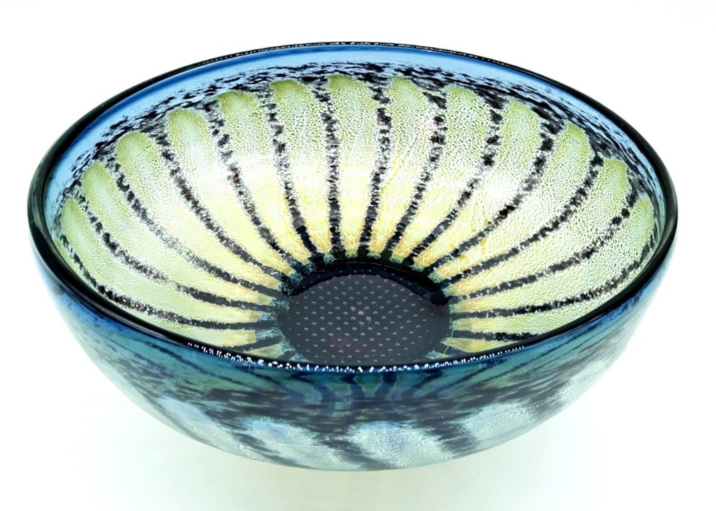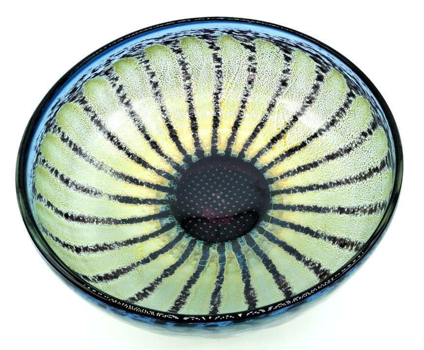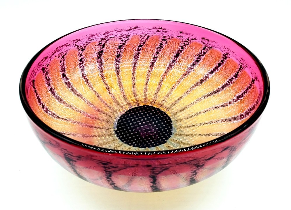 Incorporating sterling silver leaf to enhance the petals and a lattice work of pin head bubbles trapped in the heart of the flowerhead, this pretty Daisy Bowl will enhance any decor.