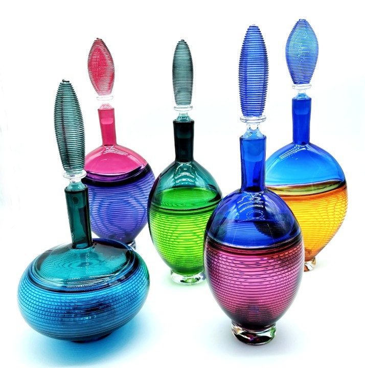 Both decorative and functional, this glorious art glass decanter will liven up any dinner party.
