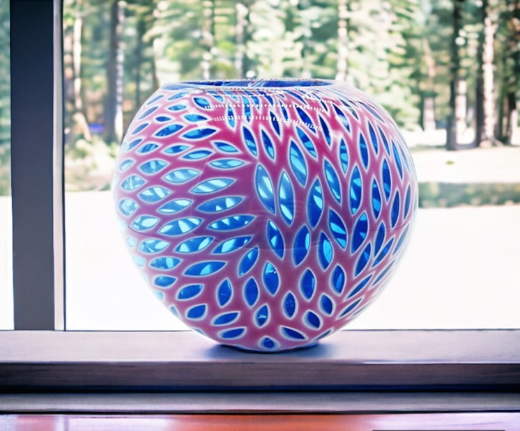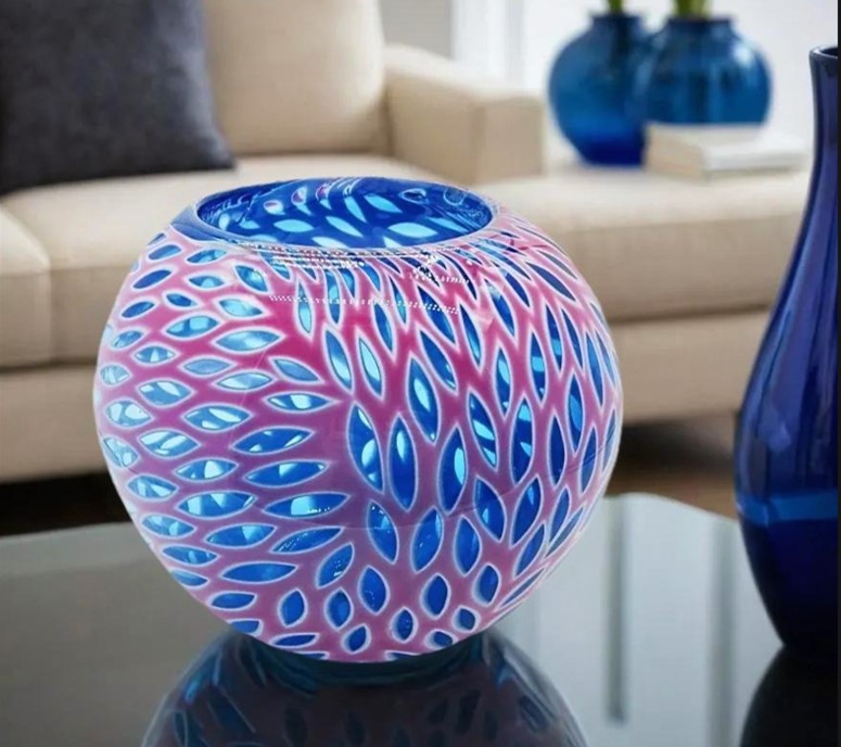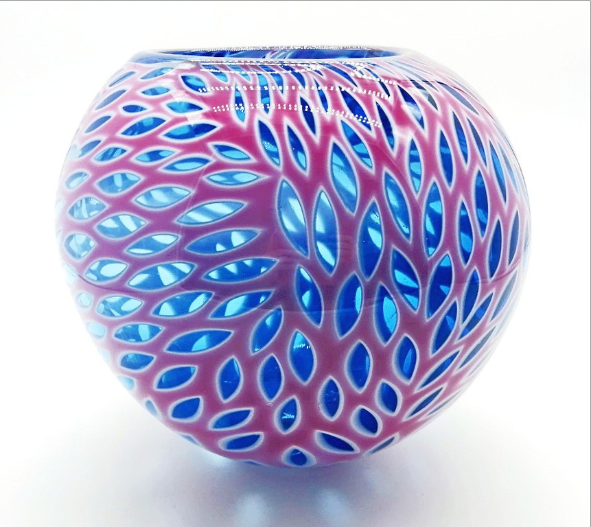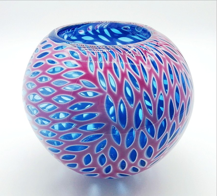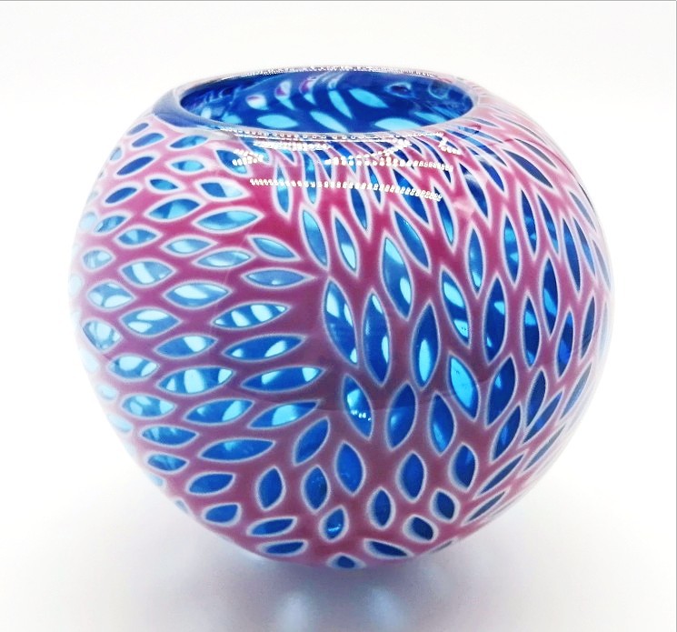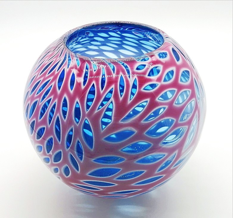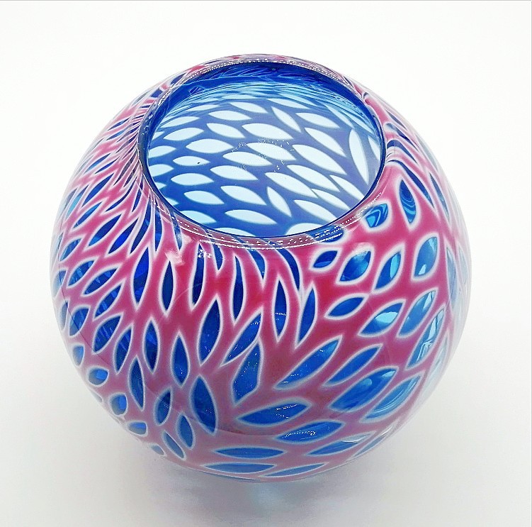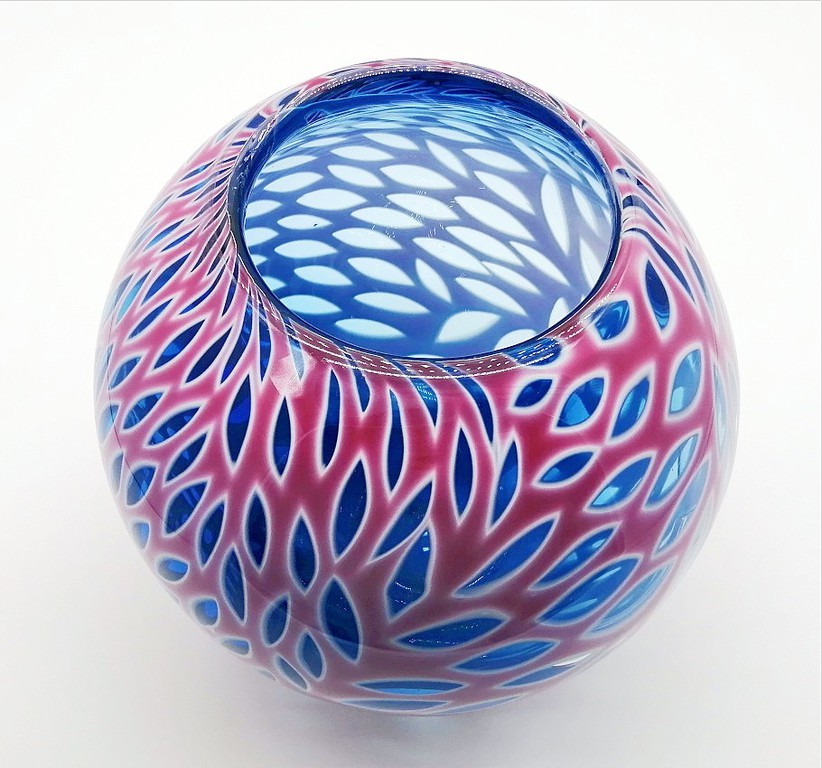 Coloured 'cups' of glass are overlayed onto each other then cut into to reveal the coloured layers. These are then encased in a clear layer of glass to seal the beautiful internal design.