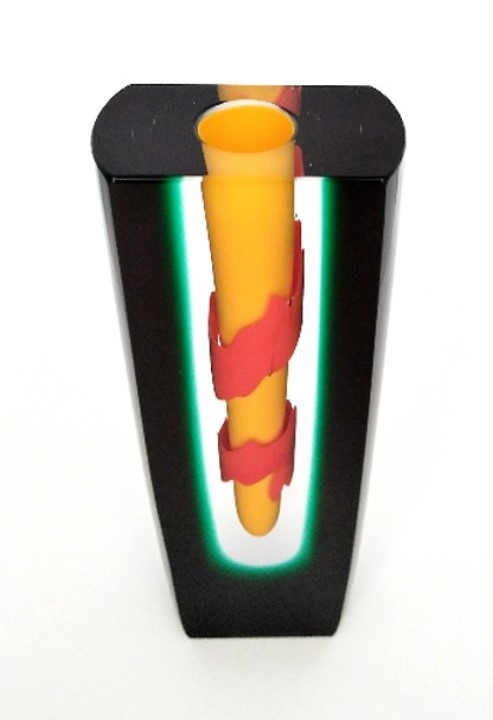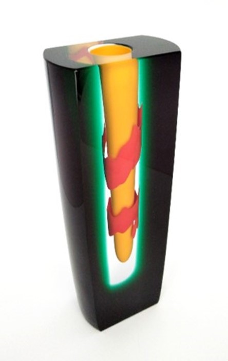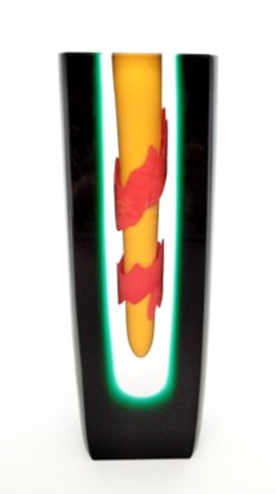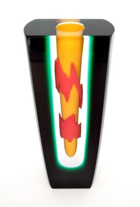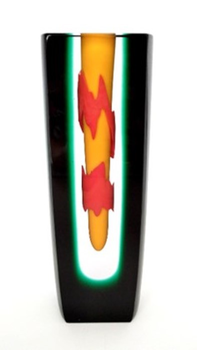 Add a joyful mix of colour to your decor with this striking contemporary art glass vase.