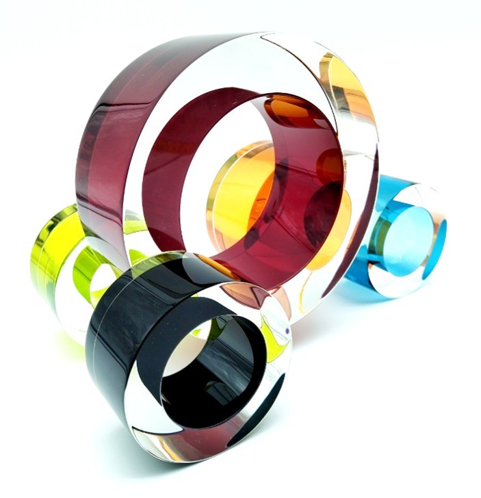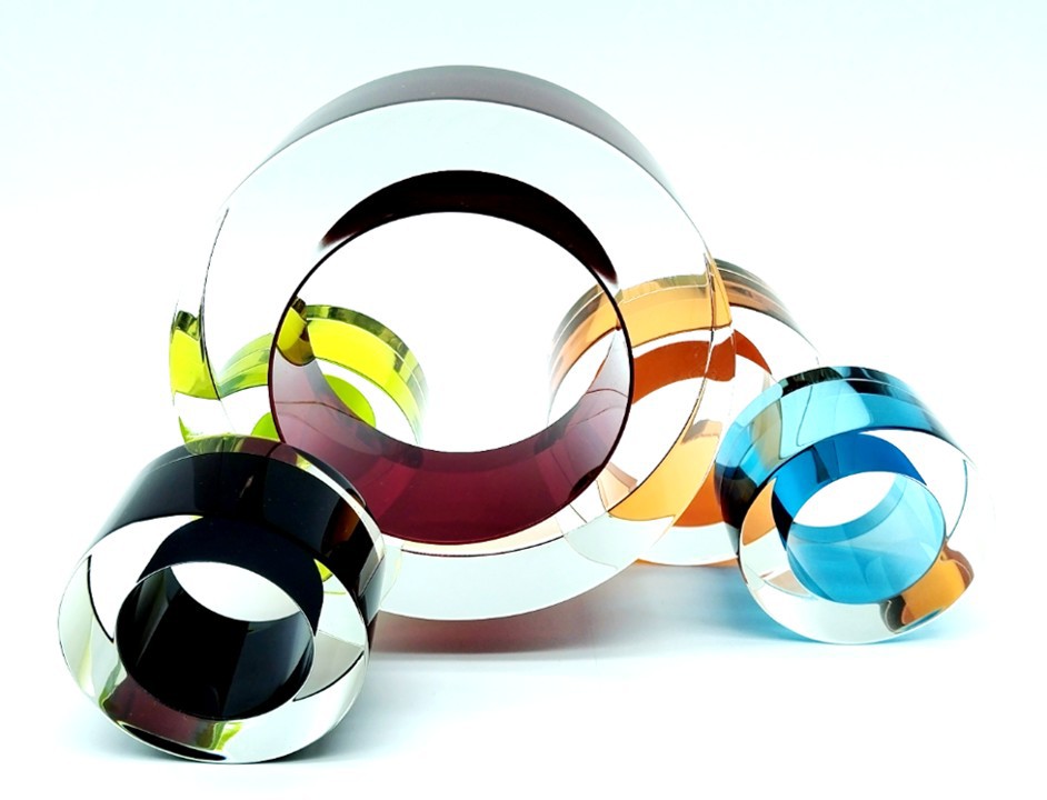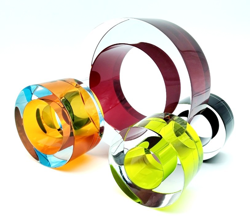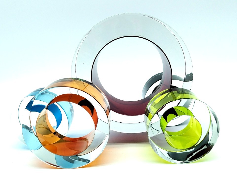 It's all about the circles in this vibrant glass sculpture, created and signed by American artist Fay Miller and exclusive to A Heart of Glass in the UK.