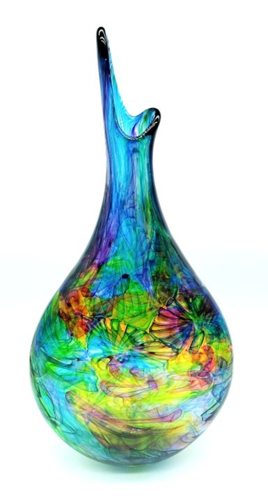 The look and feel of Monet's Gardens in Giverny, captured beautifully in this impressive art glass centrepiece.