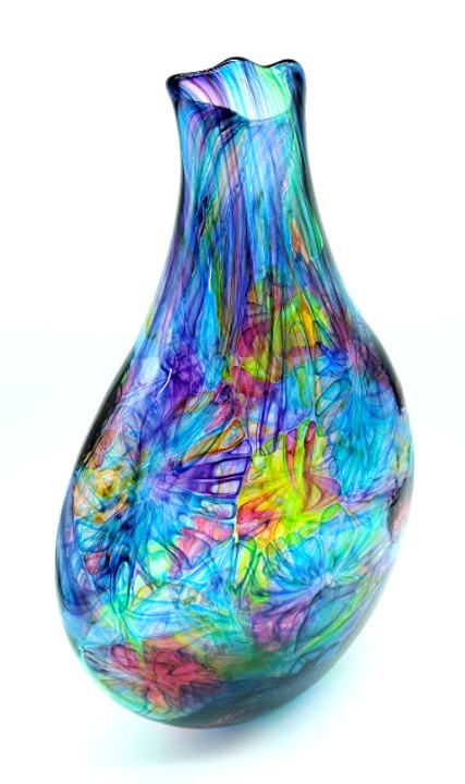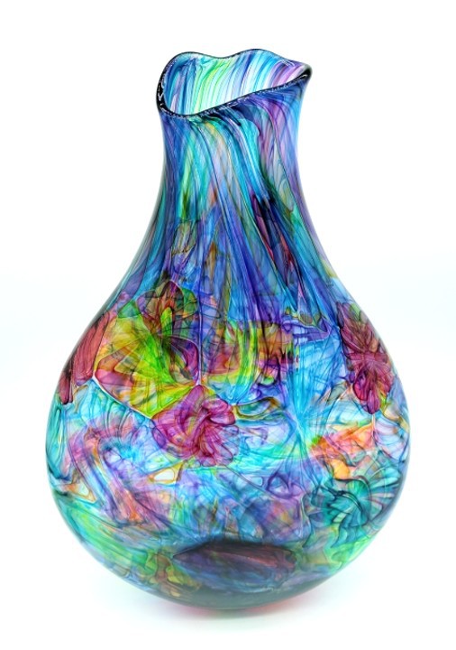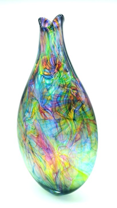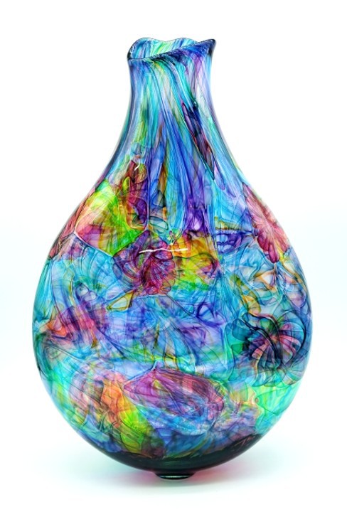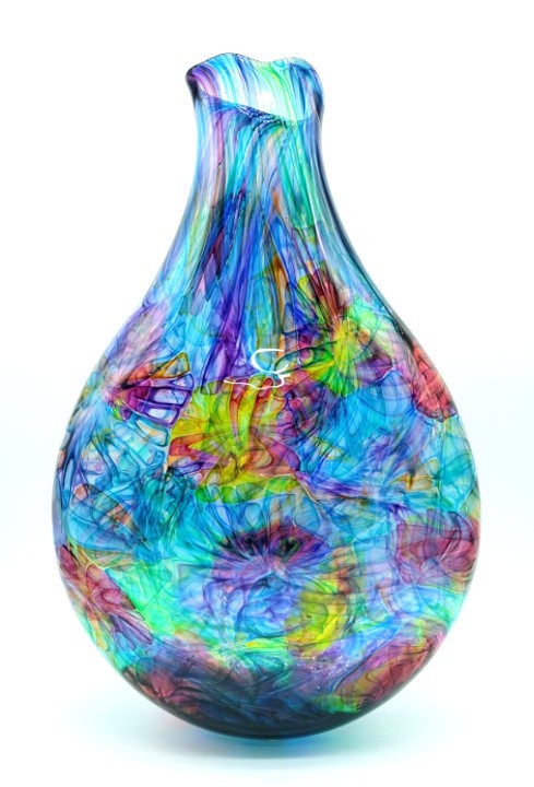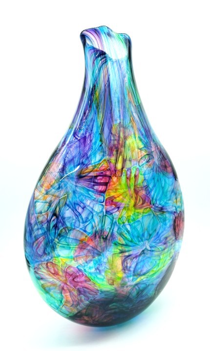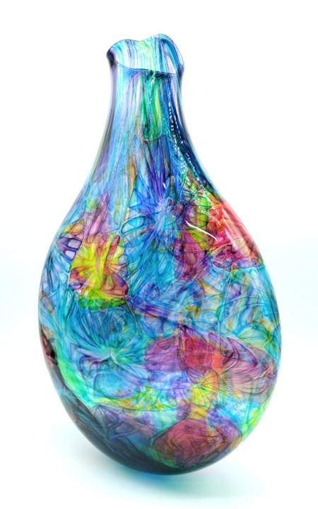 The look and feel of Monet's Gardens in Giverny, captured beautifully in this impressive art glass centrepiece.
