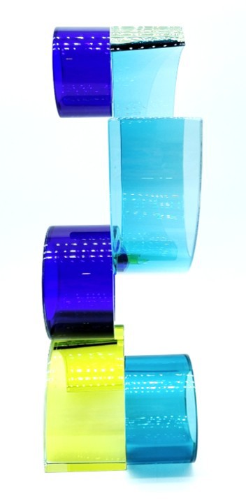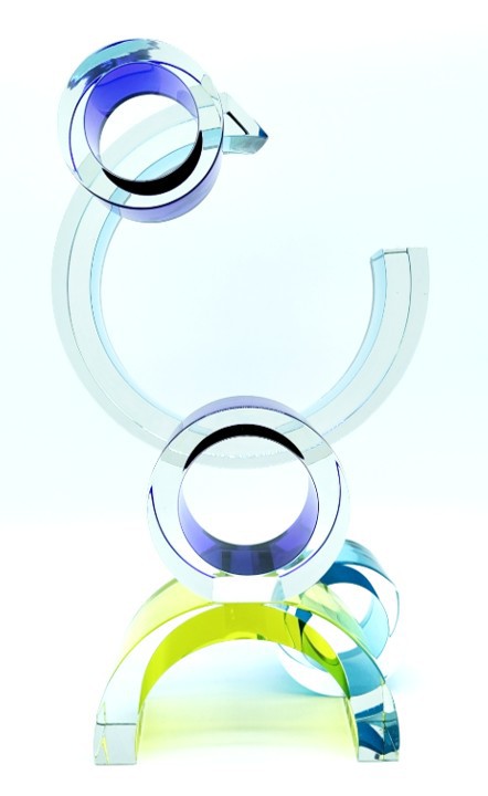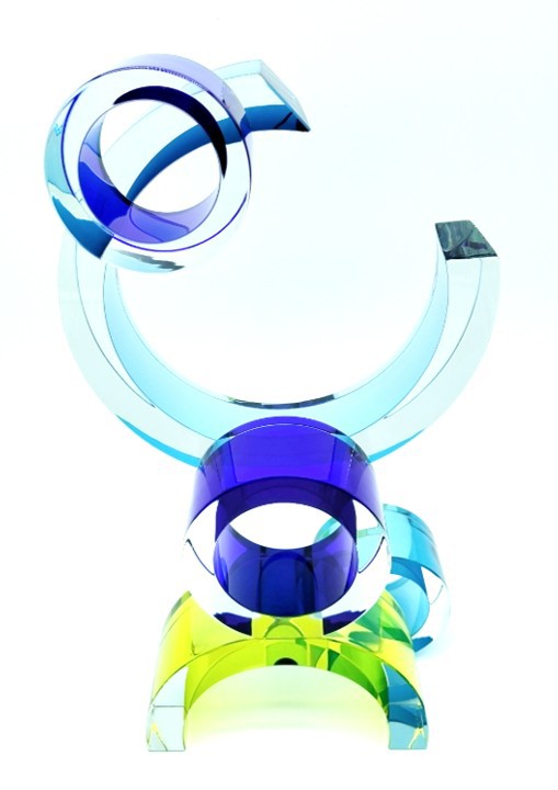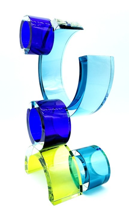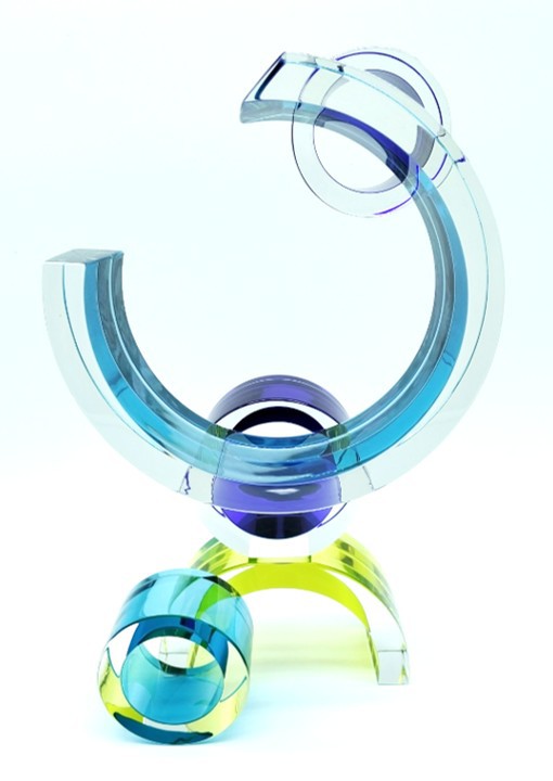 The varying phases of the moon are playfully captured in this contemporary glass sculpture.