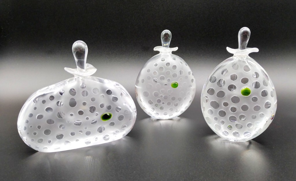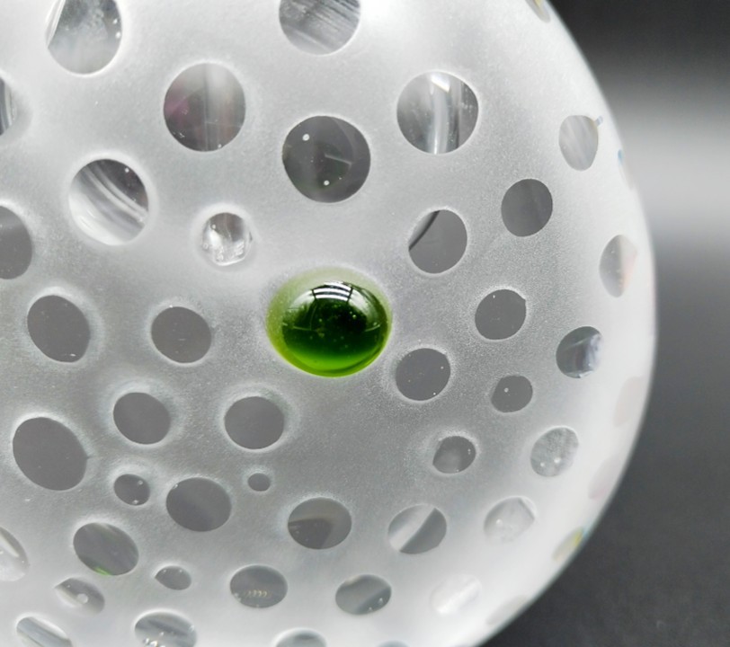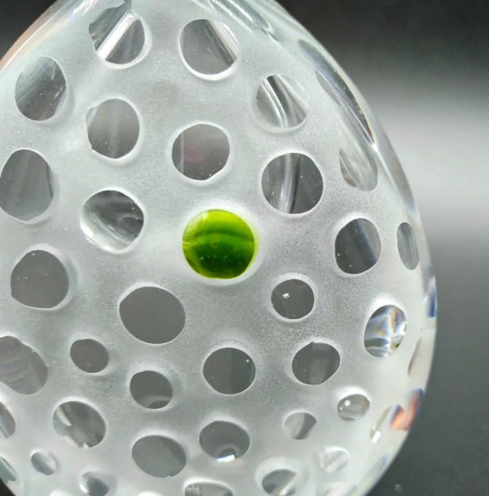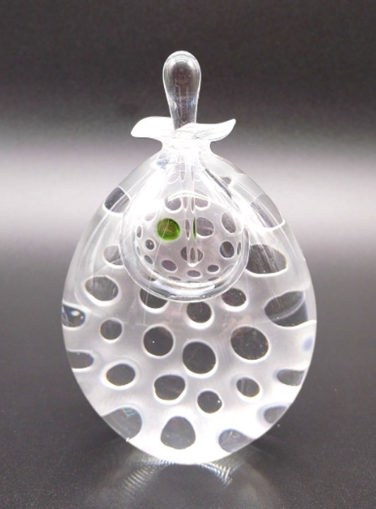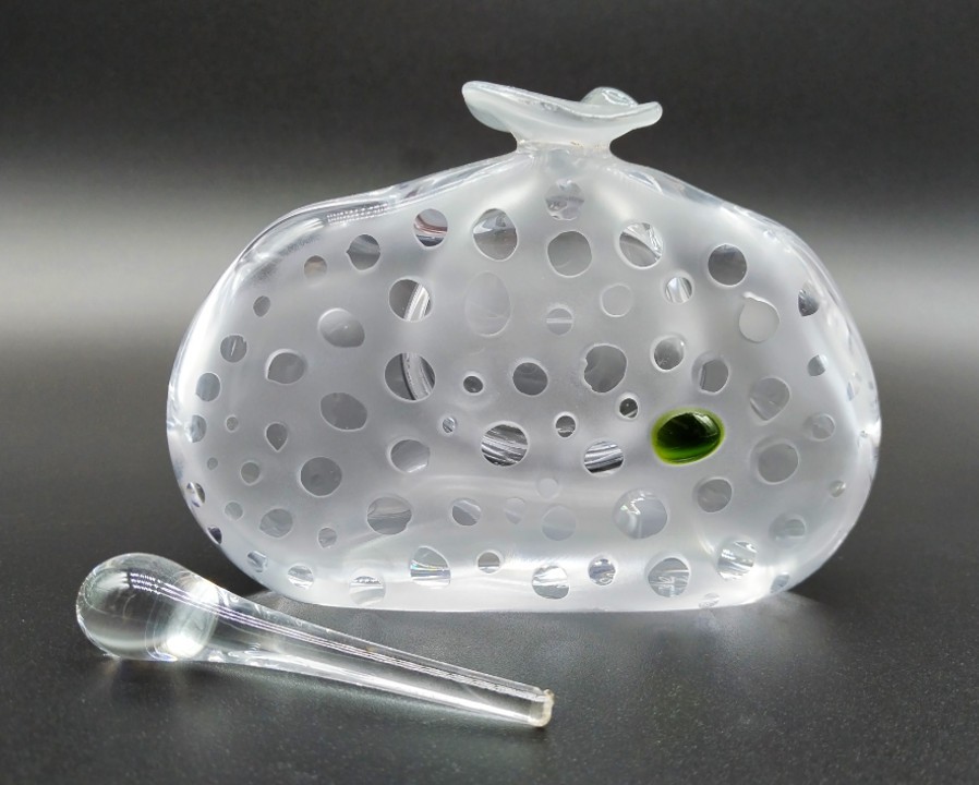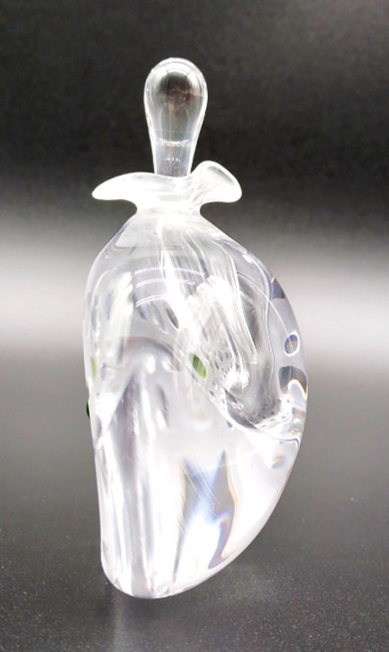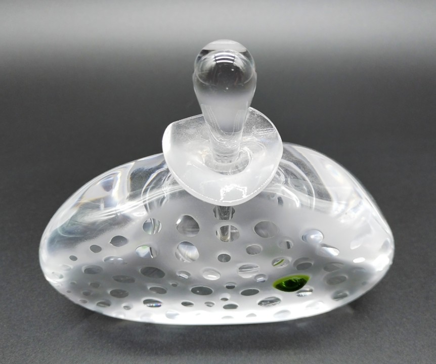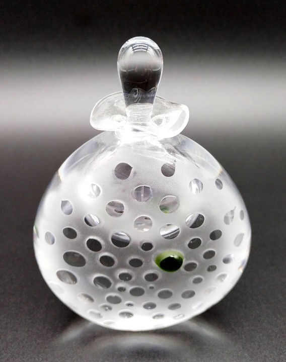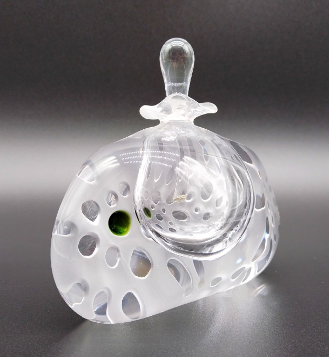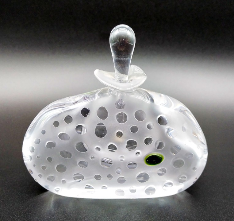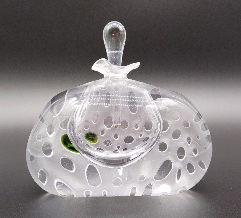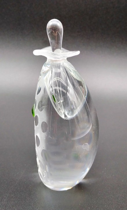 Add some timeless beauty to your decor with this pretty scent bottle. Acid etched with multiple lens cuts.