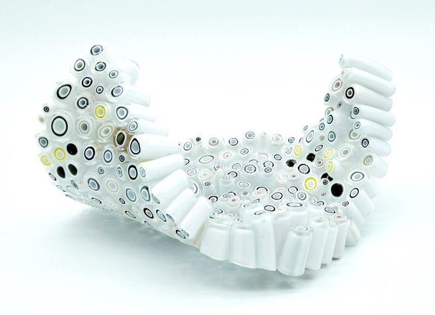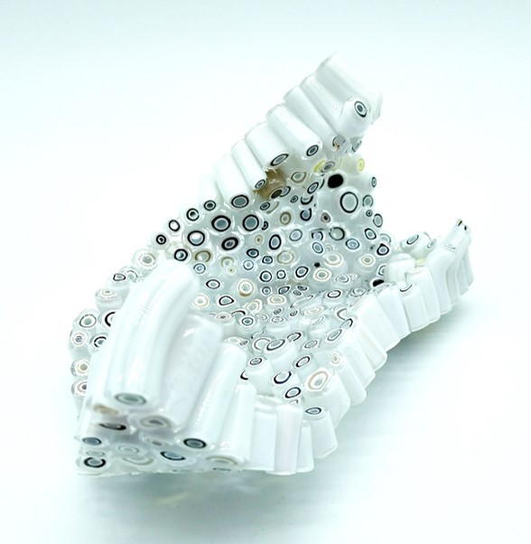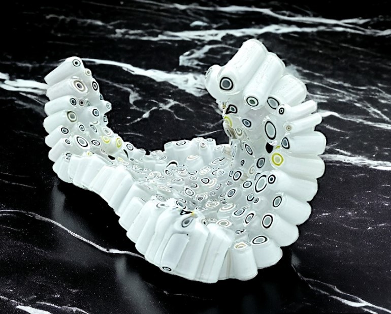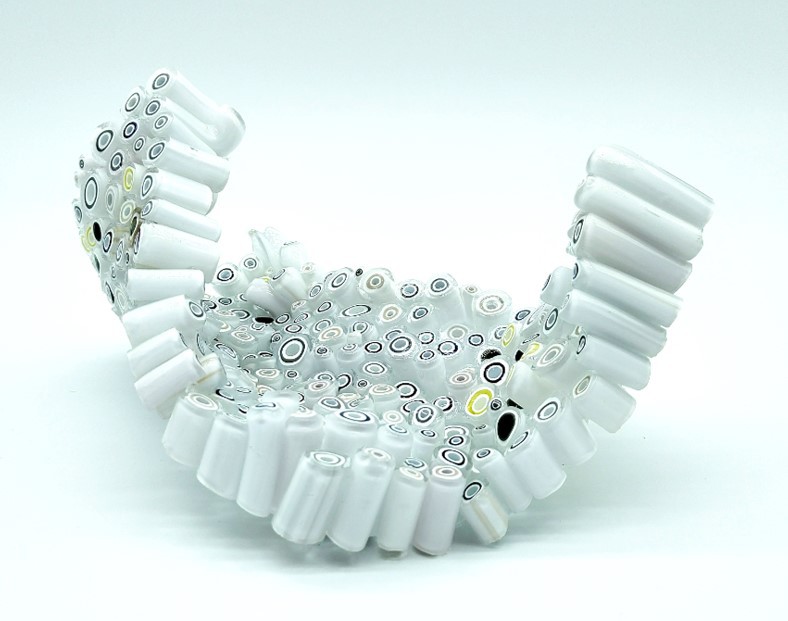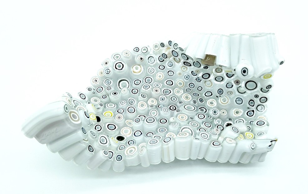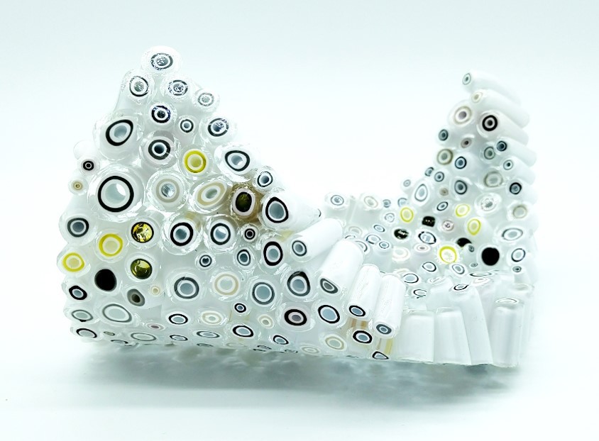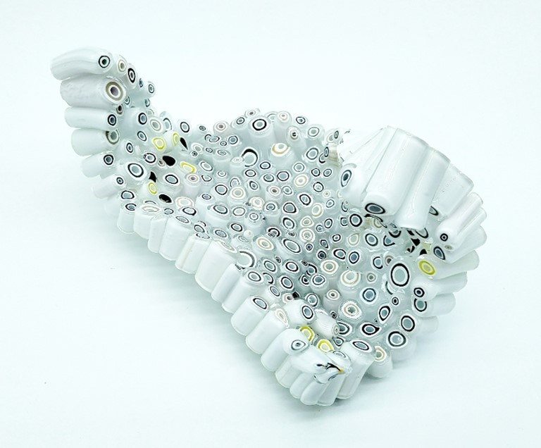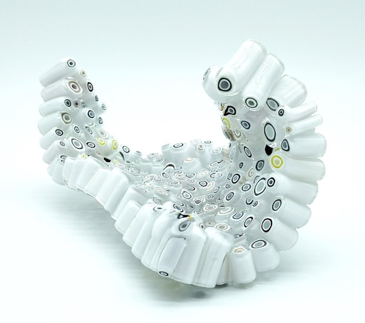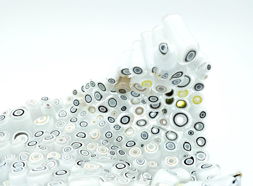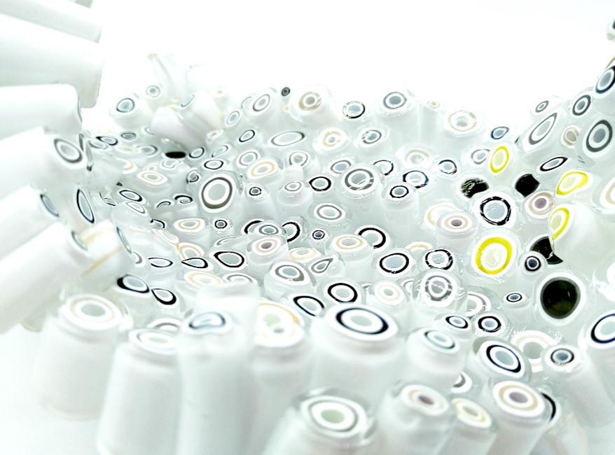 Murrini are individual canes of glass built up in layers and then cut to reveal the myriad of colour contained inside.