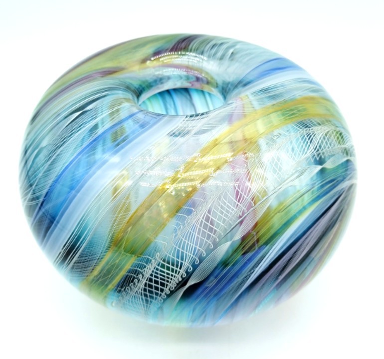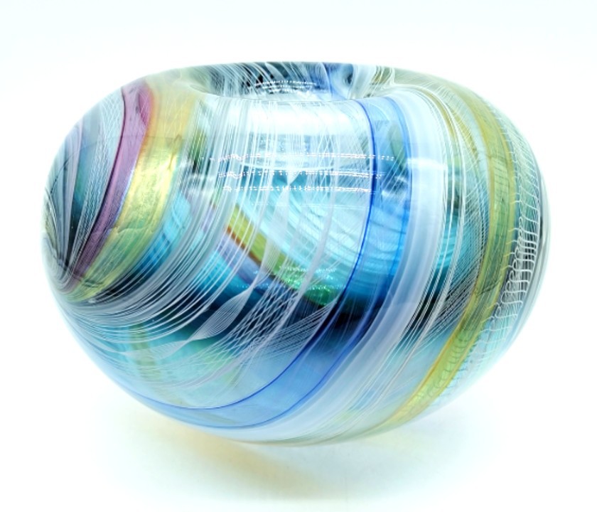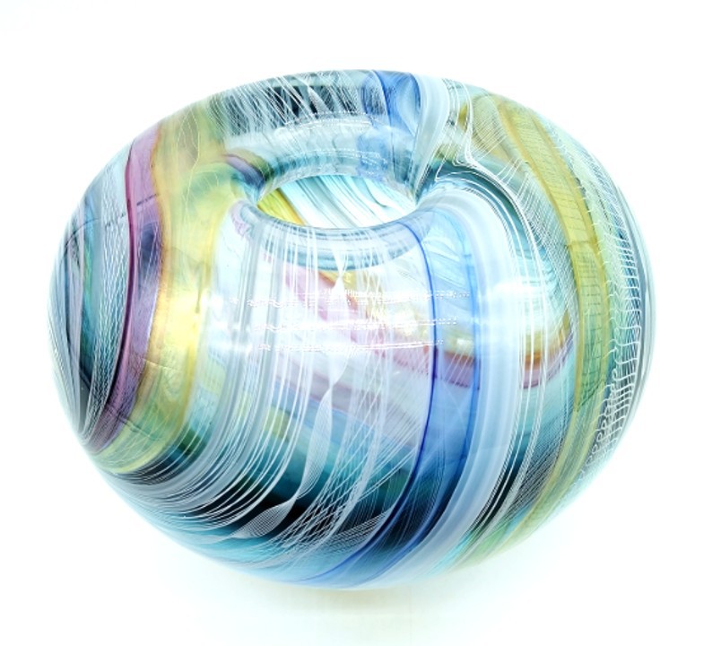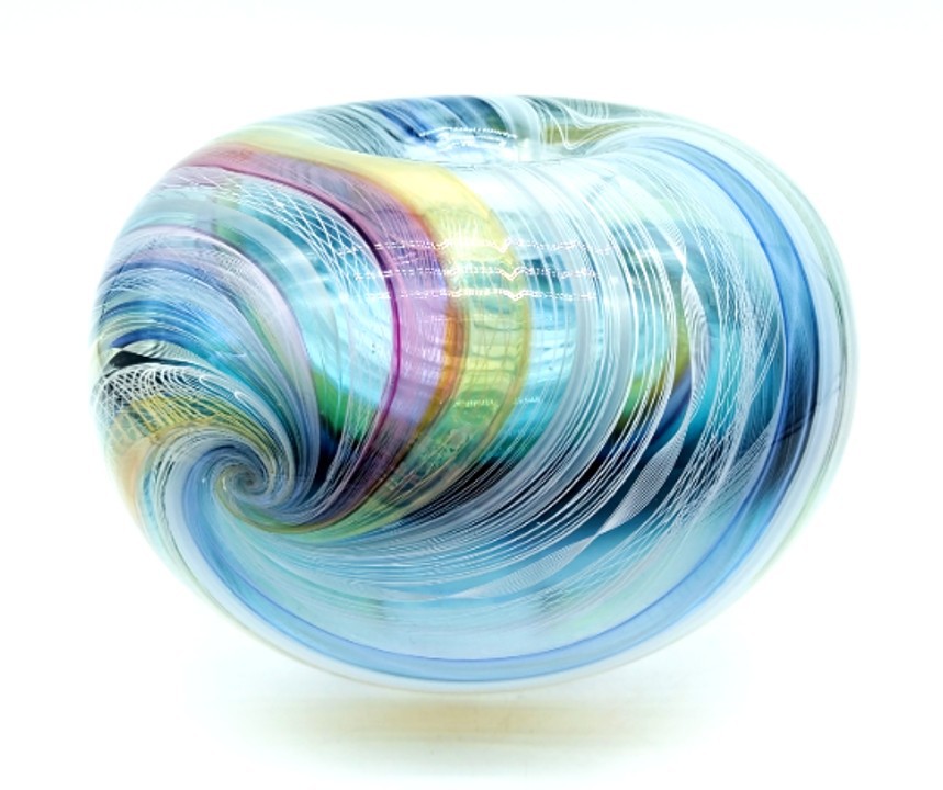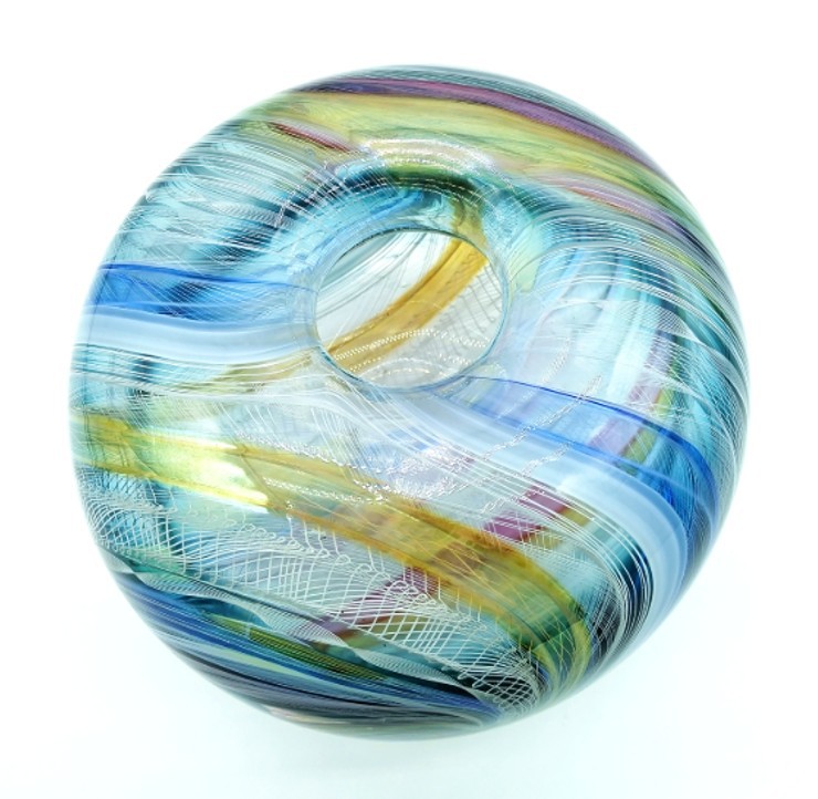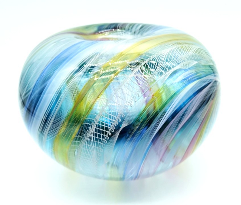 Combining ancient and modern glass techniques with a fresh execution, this stunning art glass bowl uses double colour fades and intricate cane work.