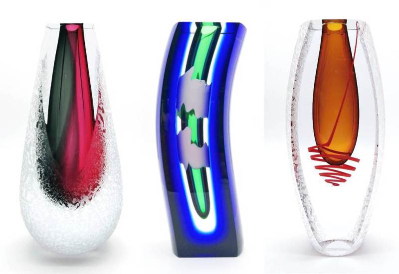 The colours of the ocean and the patterns of fishing nets aretimelessly captured in this art glass vessel.