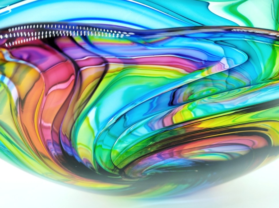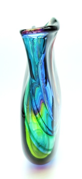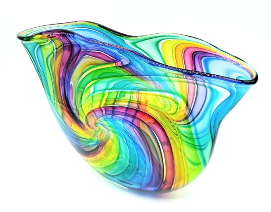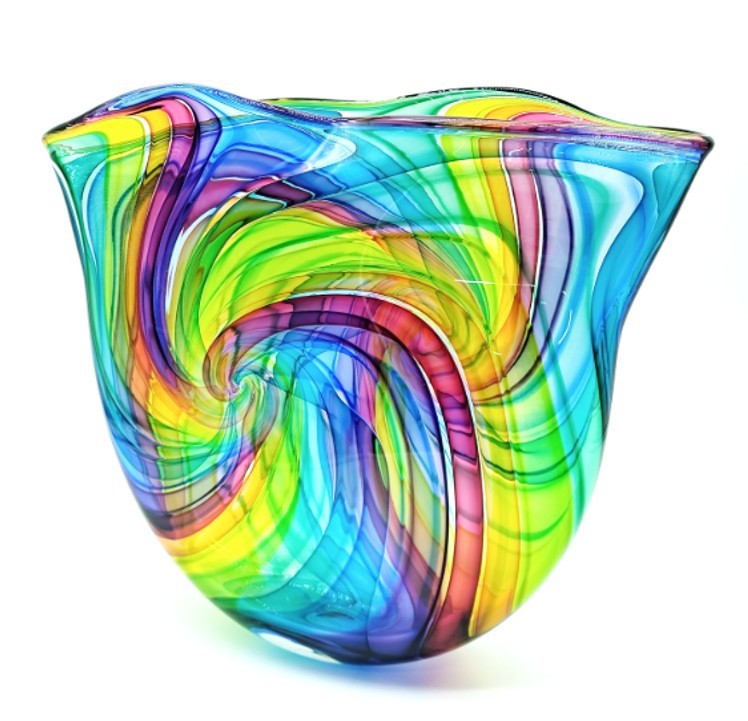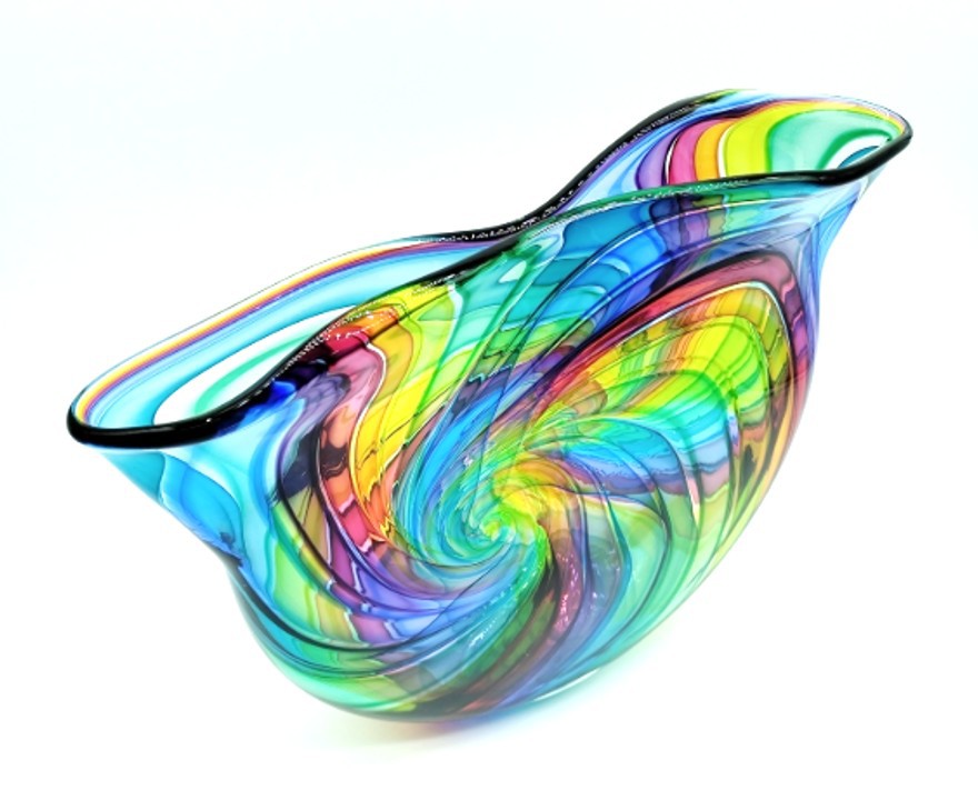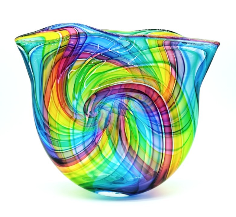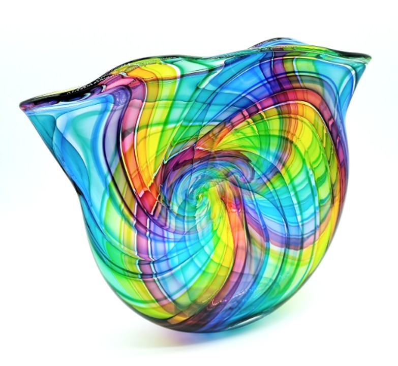 Create a bold statement with this eye-catching art glass sculpture.