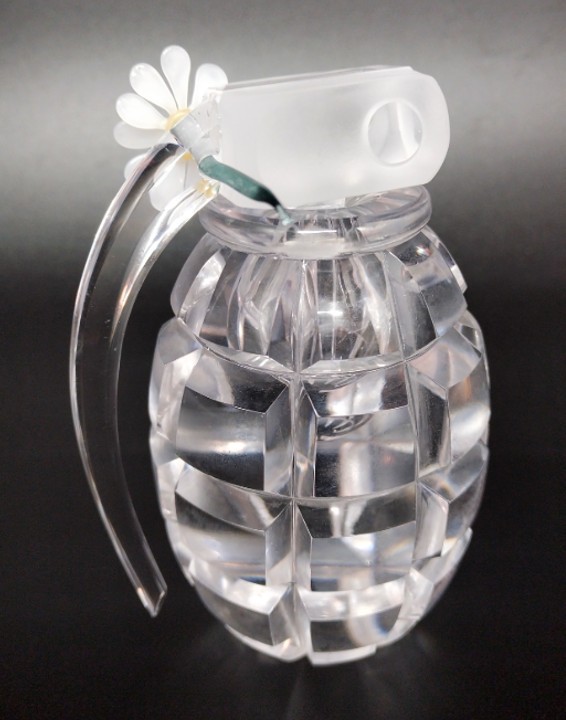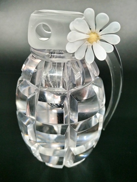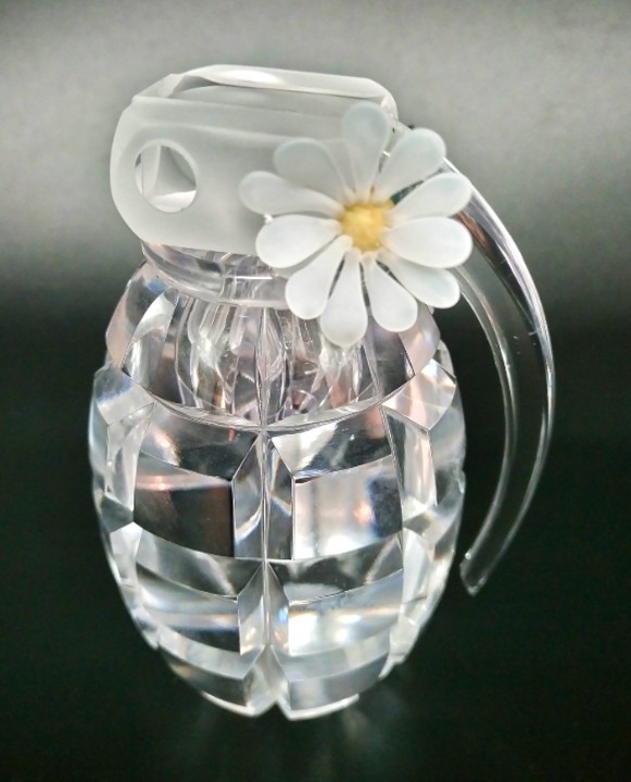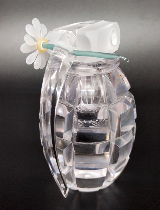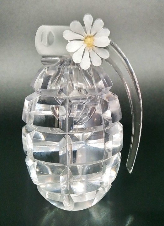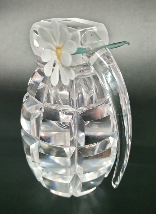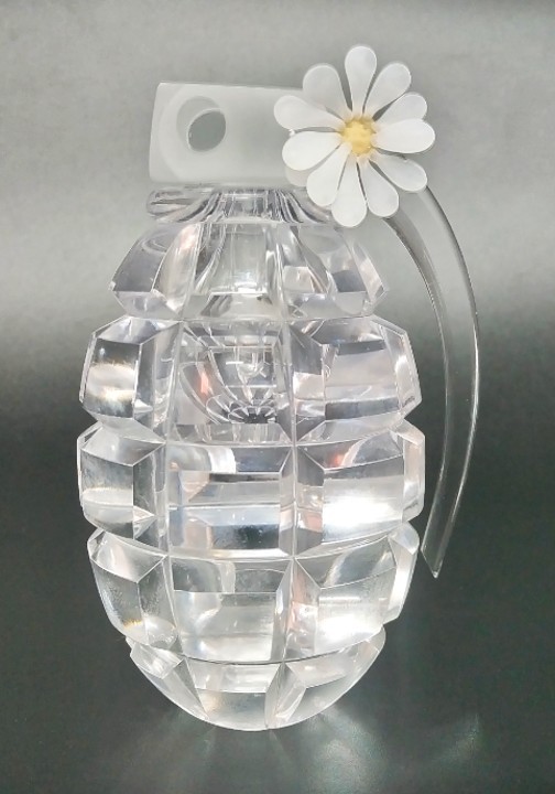 The intricate replicated grenade has been hand-sculpted with extreme precision, advocating an alternative to the anger and conflict that consumes our world.