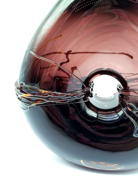 Intricate threads of glass wind their way round this beautiful bronze vessel.