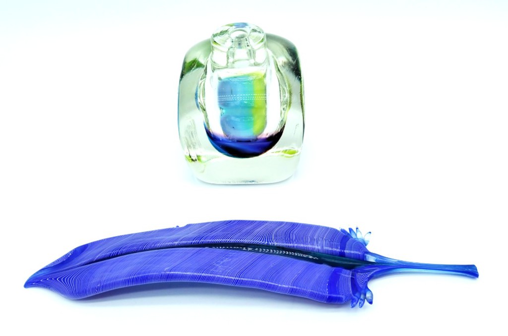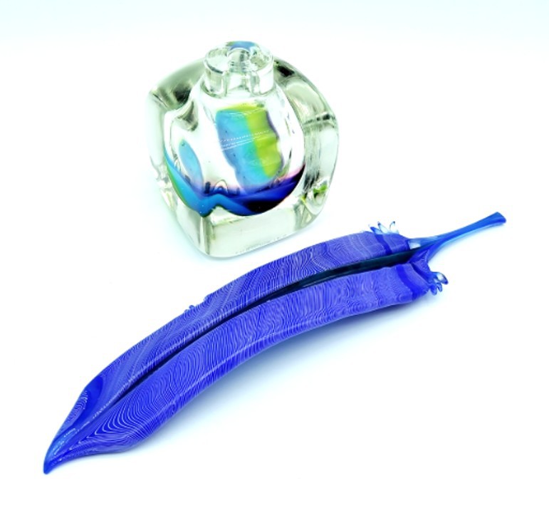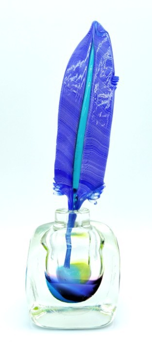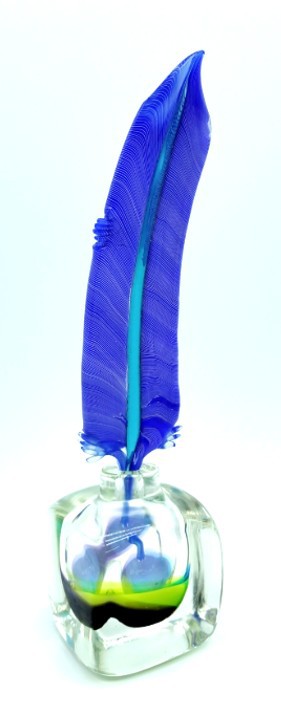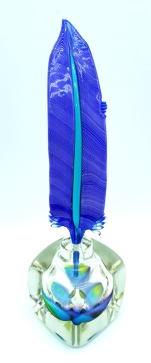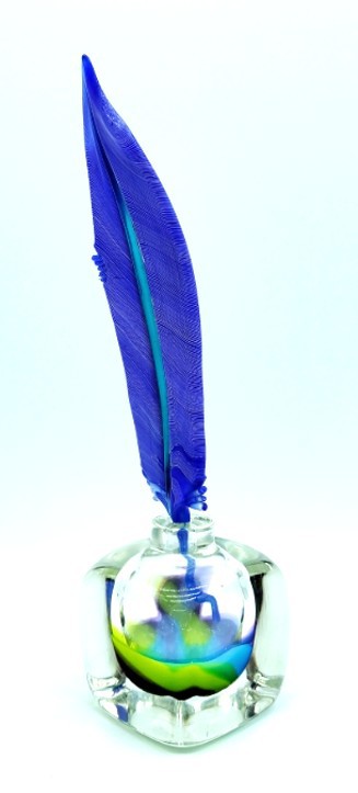 Each feather quill symbolises a different figure. The blue Pheonix feather symbolises dreams and imagining of a better world.