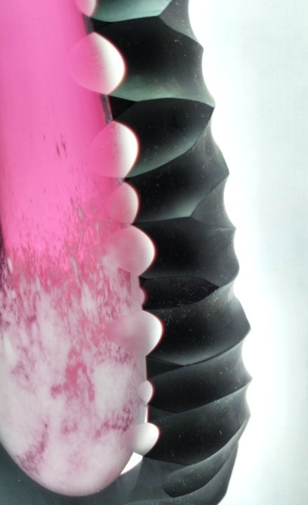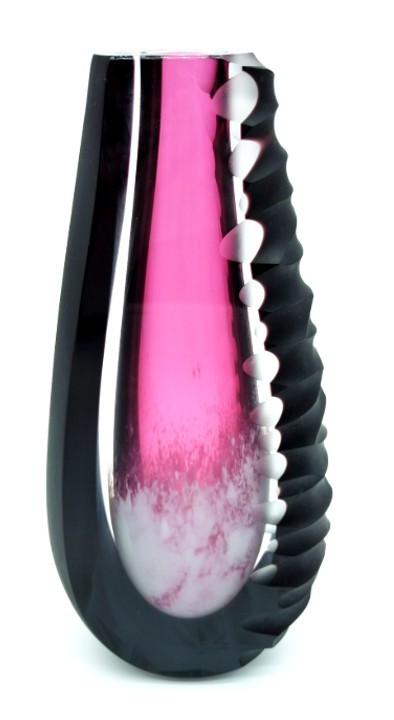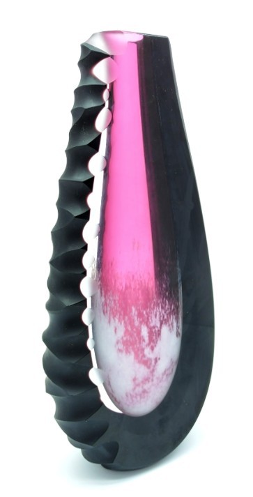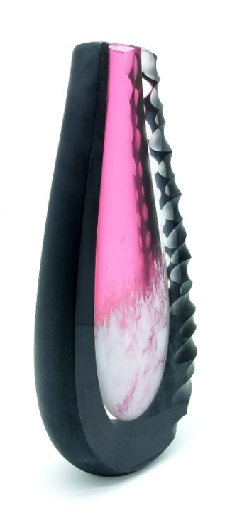 A magical mix of pink & white form the central drop while deep black creates a vivid contrast to the outer edge. Complete with multiple facet cuts.