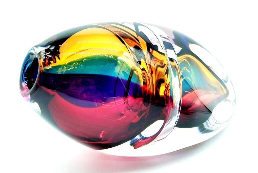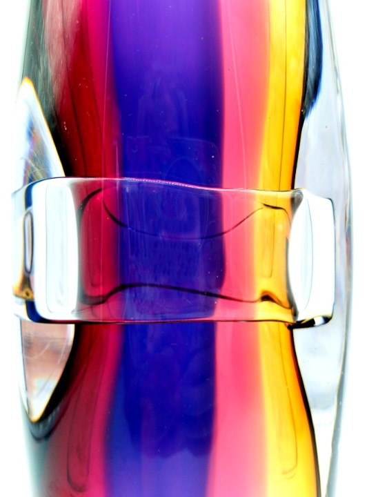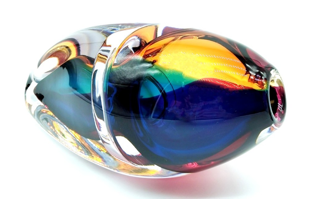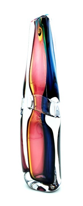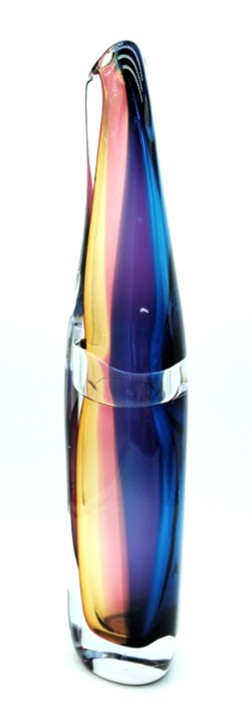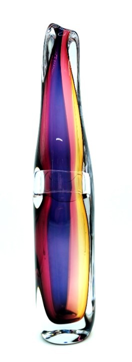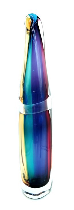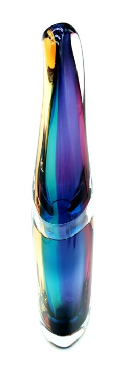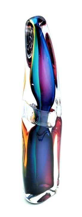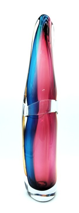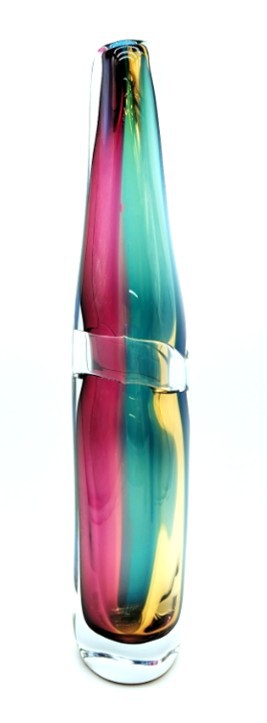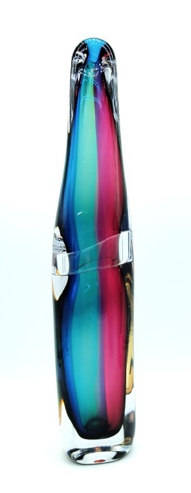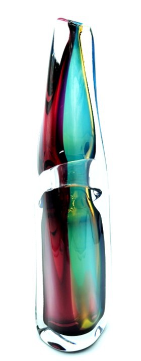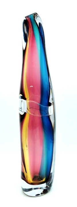 Combing the techniques of ‘sommerso’ and ‘incalmo’, this impressive and colourful art glass vessel will add year round colour to any decor. Why choose one colour when you can have them all!